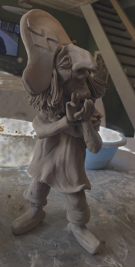 - Modellierung: Der Künstler modelliert die Figur aus Ton oder einem anderen keramischen Material von Hand. Hierbei werden verschiedene Werkzeuge und Techniken wie Töpferscheibe, Handaufbau oder Formpressen eingesetzt, um das gewünschte Design und die Form zu erreichen.